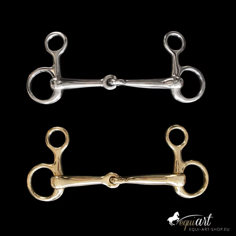 Baucher Trense, oder auch Fillis Gebiss genannt, in silber oder messing. Das Gebiss hat eine Stärke von 12mm.