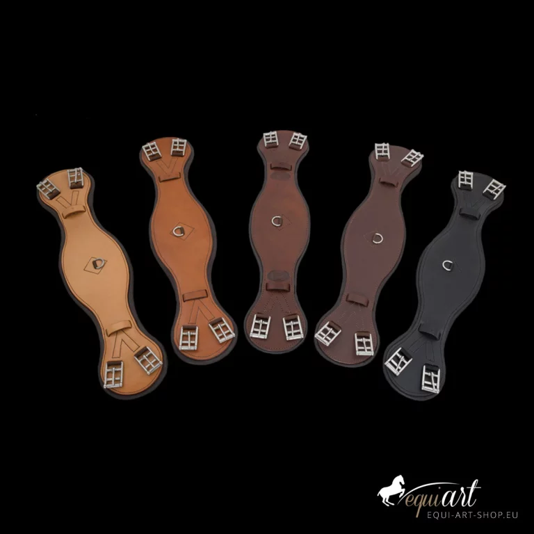 Sehr edle, anatomisch geformte und zugleich robuste Sattelgurte aus Glattleder der Firma Deuber & Partner.