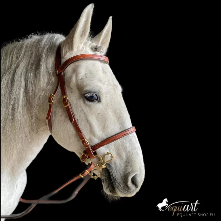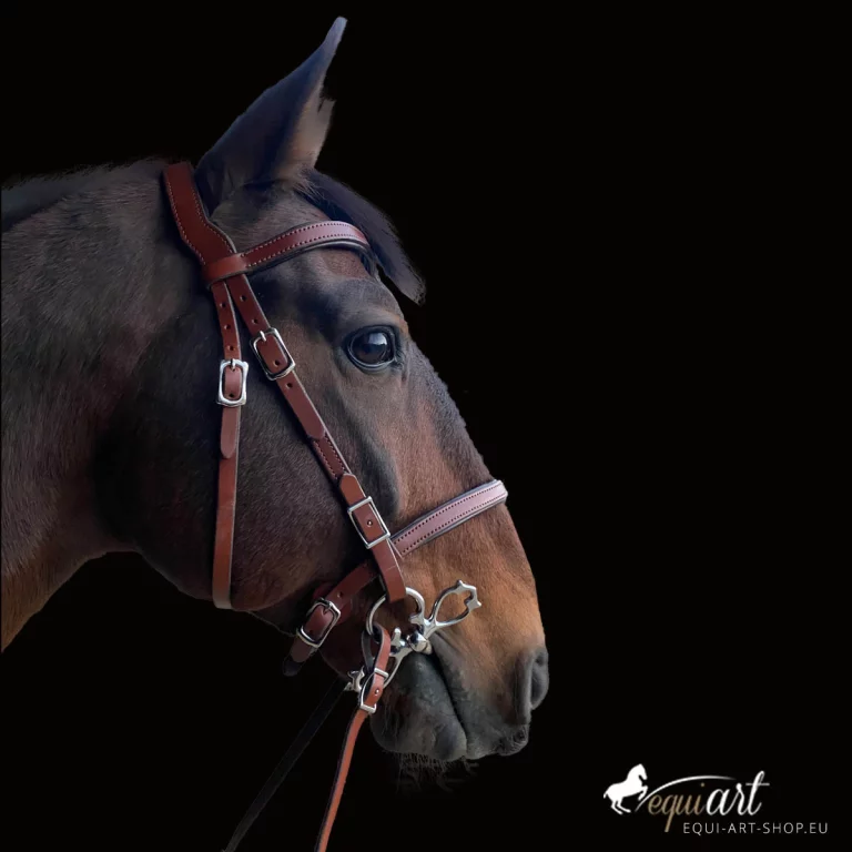 Der Zaum wird mit Zügel geliefert. Die Zügel sind, passend zum Zaum, auch zweifarbig.