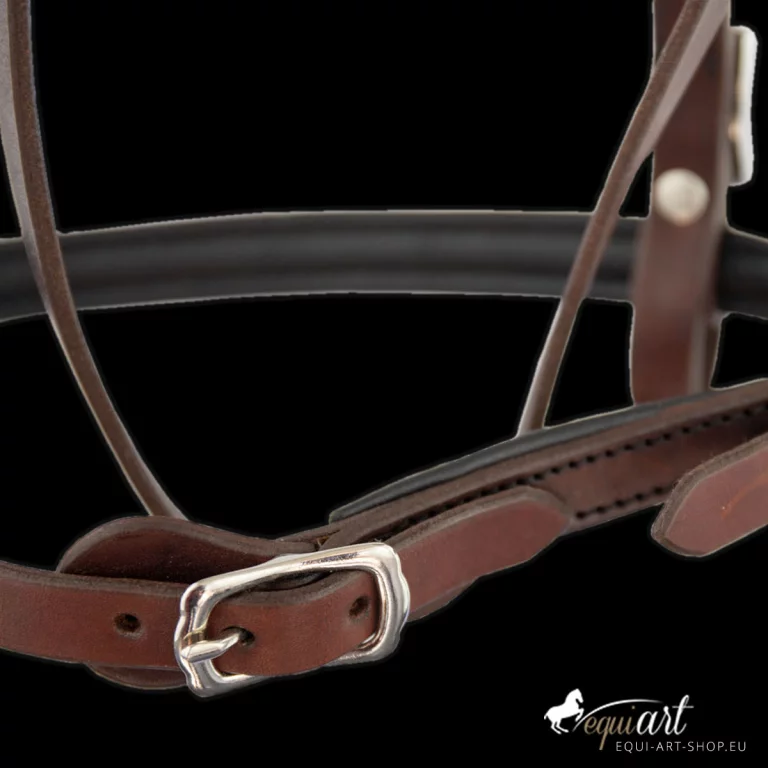Deuber Soft Feel Trense Hochwertiger Barockzaum von DEUBER & PARTNER, der sich durch seine besonders weiche und anatomisch ausgewogene Verarbeitung auch für empfindliche Pferde eignet. Der Zaum ist doppelt mit weichem Leder verarbeitet und ummantelt und verfügt über ein anatomisches Genickstück. Der Zaum besticht durch schlichte, eckige Schnallen wahlweise in Messing oder Silber.