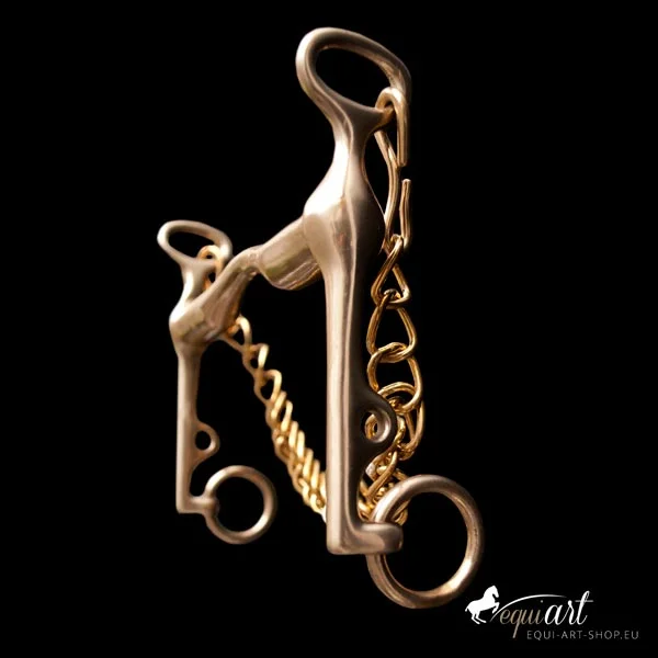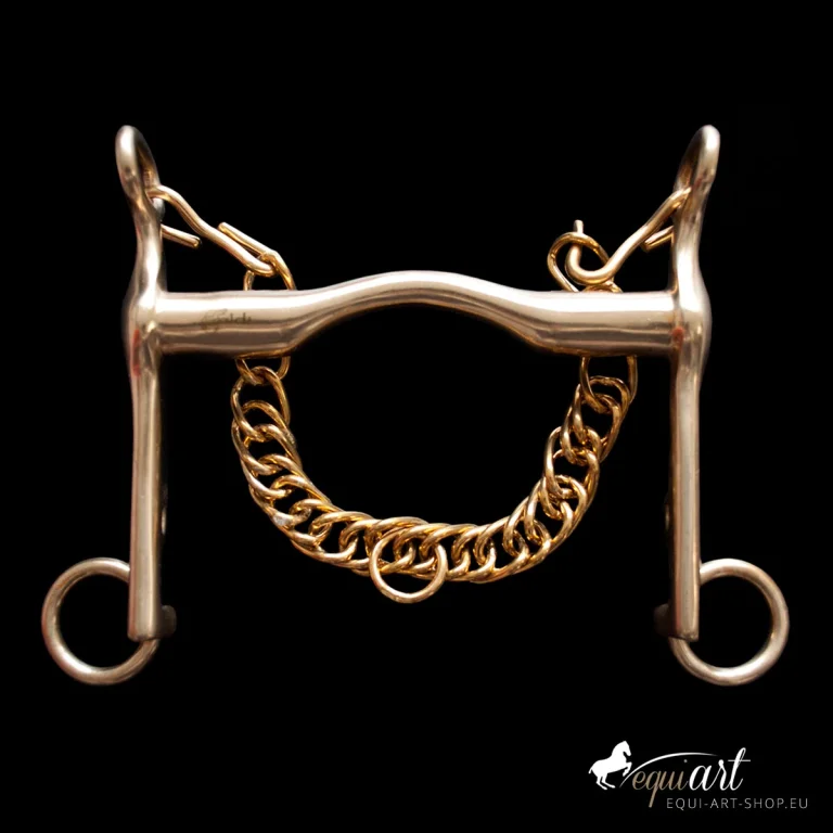 Dressurkandare von Zaldi in 12,5 / messing mit wenig Zungenfreiheit. Das Gebiss wird mit Kinnkette geliefert.