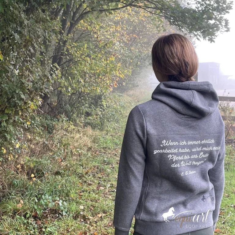 Mehr als nur ein Hoodie, der equi-art Hoodie ist ein wahres Statement für alle passionierten Reiterinnen und Reiter. Mit dem inspirierenden Zitat von Reitmeister E.F. Seidler bringt dieser Hoodie deine Liebe zum Reitsport perfekt zum Ausdruck.