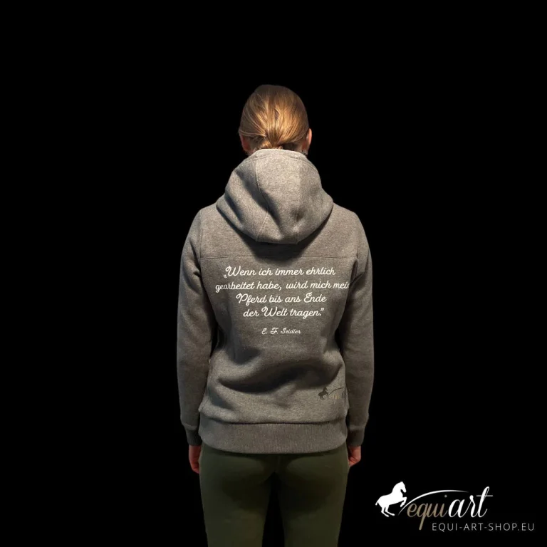 Dieser Hoodie ist mehr als nur ein Kleidungsstück – er ist ein Statement für alle passionierten Reiterinnen und Reiter mit einem inspirierenden Zitat von Reitmeister E.F. Seidler.