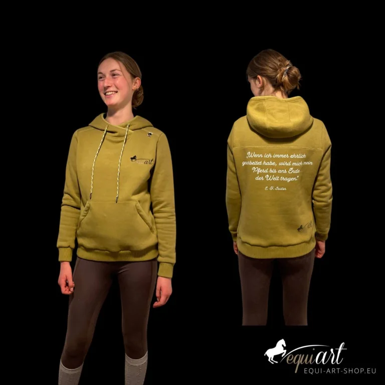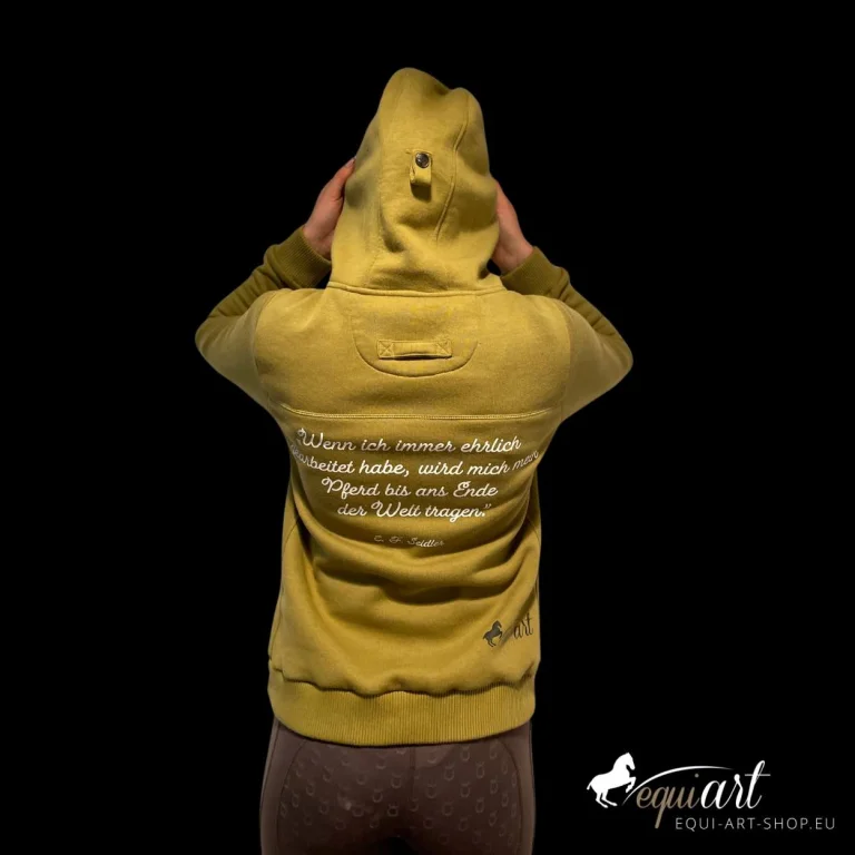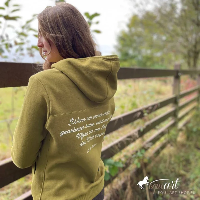 Mehr als nur ein Hoodie, der equi-art Hoodie ist ein wahres Statement für alle passionierten Reiterinnen und Reiter. Mit dem inspirierenden Zitat von Reitmeister E.F. Seidler bringt dieser Hoodie deine Liebe zum Reitsport perfekt zum Ausdruck.