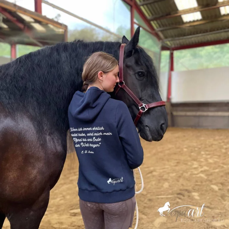 Mehr als nur ein Hoodie, der equi-art Hoodie ist ein wahres Statement für alle passionierten Reiterinnen und Reiter. Mit dem inspirierenden Zitat von Reitmeister E.F. Seidler bringt dieser Hoodie deine Liebe zum Reitsport perfekt zum Ausdruck.