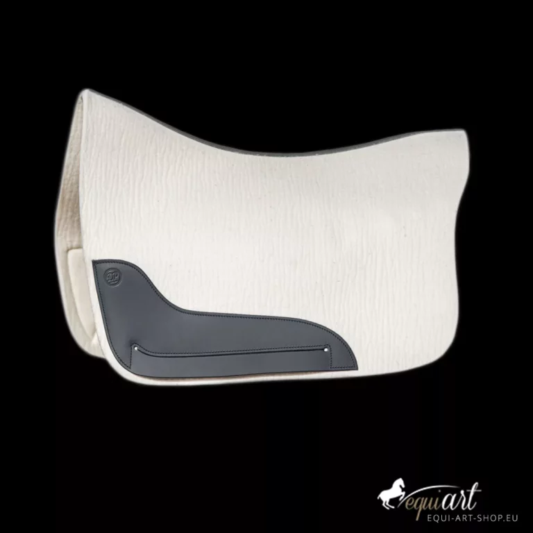 Zum einen ist es ein reines Naturmaterial mit besten Klimaeigenschaften – im Winter wärmend im Sommer kühlend. Perfekt für den Pferderücken. Zum anderen ist Filz ein extrem schmutz-, wasser- und staubabweisendes Material. In den meisten Fällen reicht es, den Filz abzubürsten und kurz zu trocknen. Zu guter Letzt hat Filz auf dem Pferderücken auch eine stoßabsorbierende Wirkung und kann, wenn es reiner Wollfilz ist, sogar antibakterielle Eigenschaften haben. Also ein hervorragendes Material, um daraus wunderschöne iberische Schabracken anzufertigen.