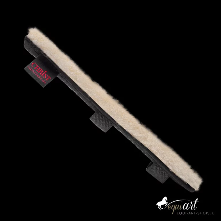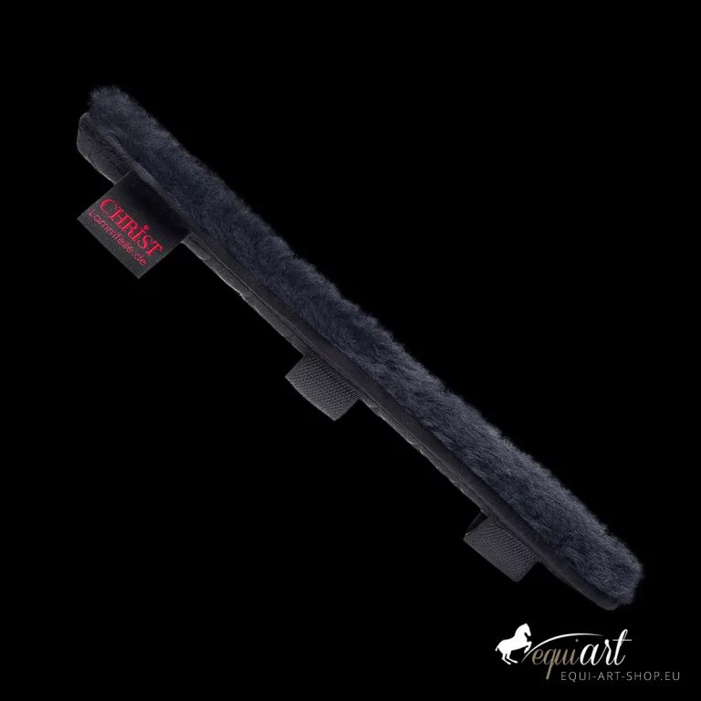 Der Turnier Genickschoner von CHRIST, mit ca. 2 cm hohem Lammfell auf der Innenseite, wird mit starken Klettbändern am Genickriemen befestigt. Der Schoner ist durch robusten Satteldeckenstoff zusätzlich verstärkt.