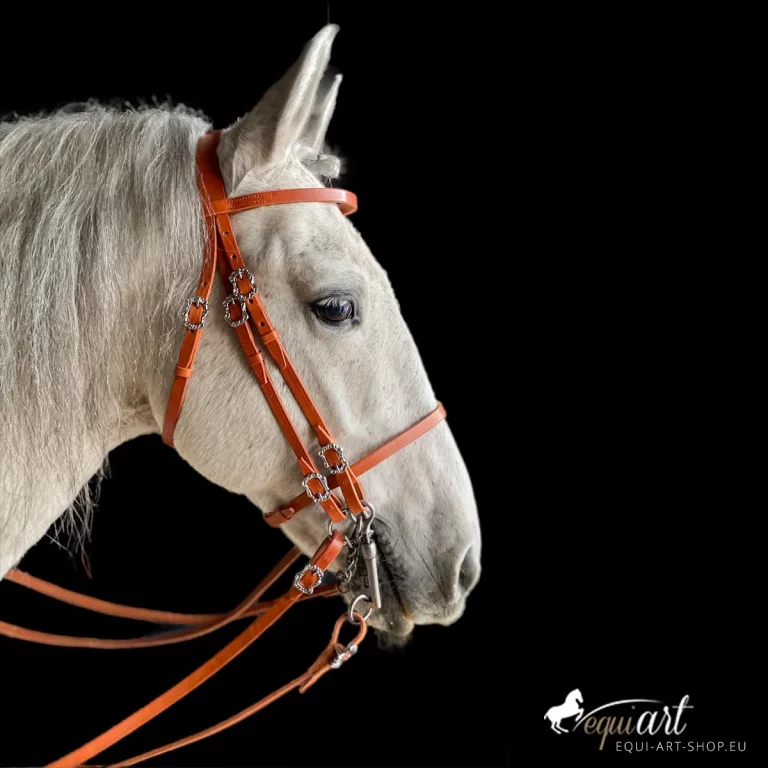 Dieser Kandarenzaum ist auf Maß erhältlich. Senden Sie uns dazu bitte eine E-Mail an info{at}equi-art.eu.