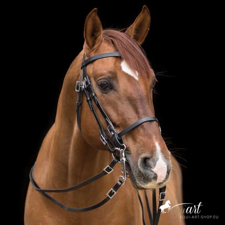 Der Zaum ist auch als Trensenzaum oder auf Maß erhältlich. Für Maßbestellungen senden Sie uns bitte eine E- mail an: info{at}equi-art.eu.