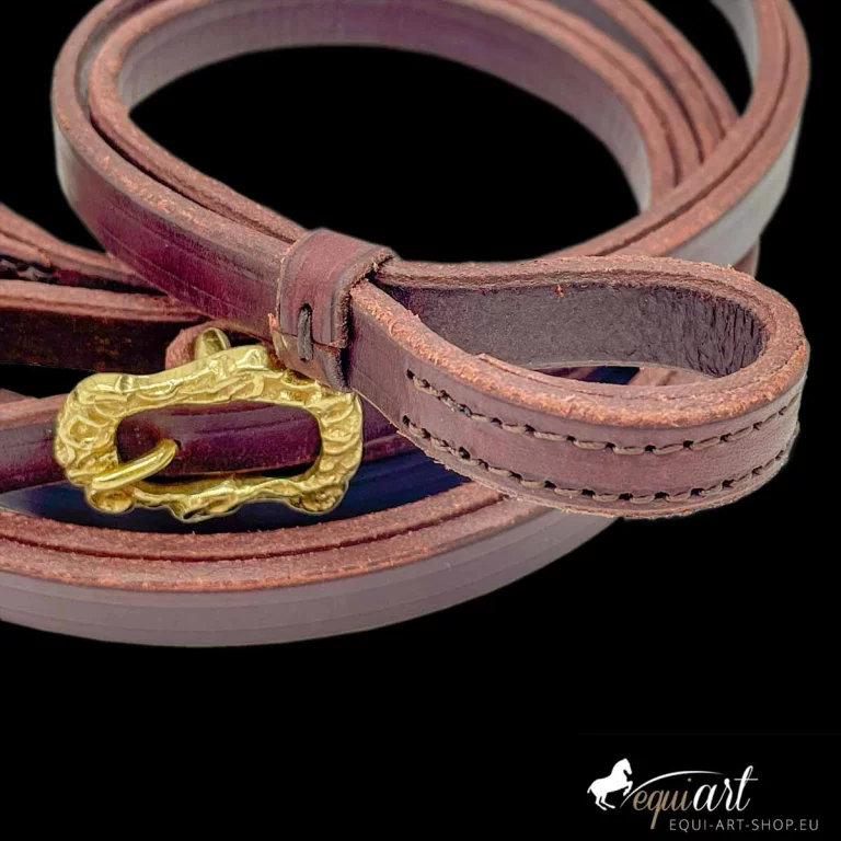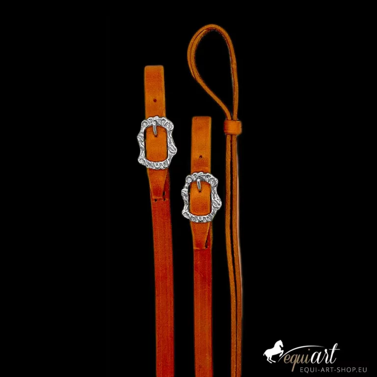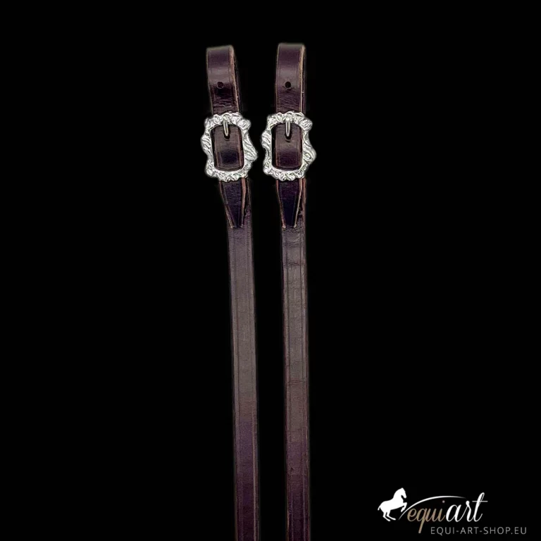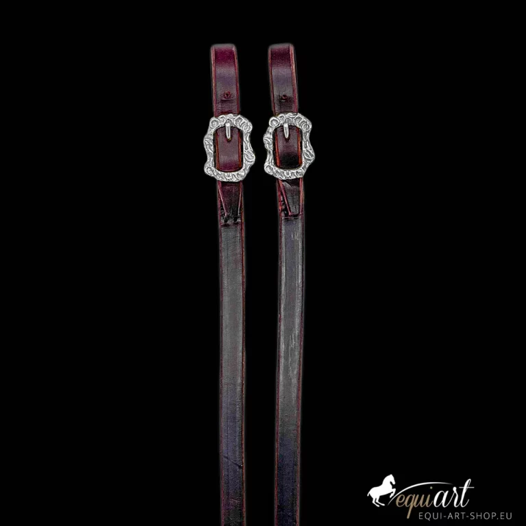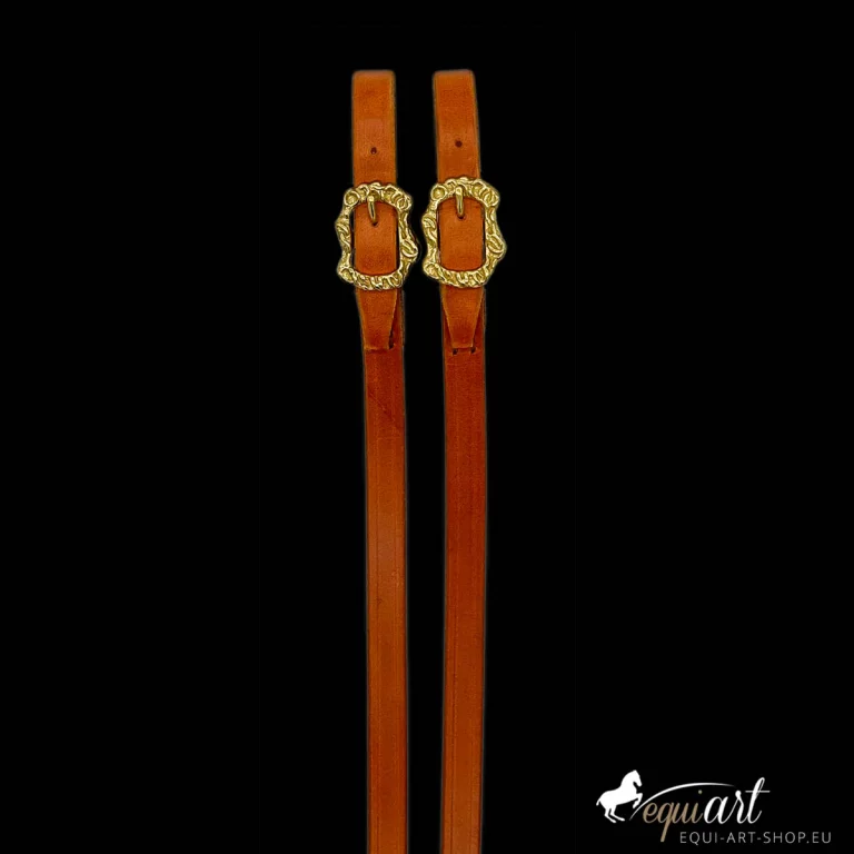 Kandarenzügel mit barocken Cortesia-Schnallen aus weichem Leder und einer Gesamtlänge von 2,9m, sowie einer Breite von 14 mm.