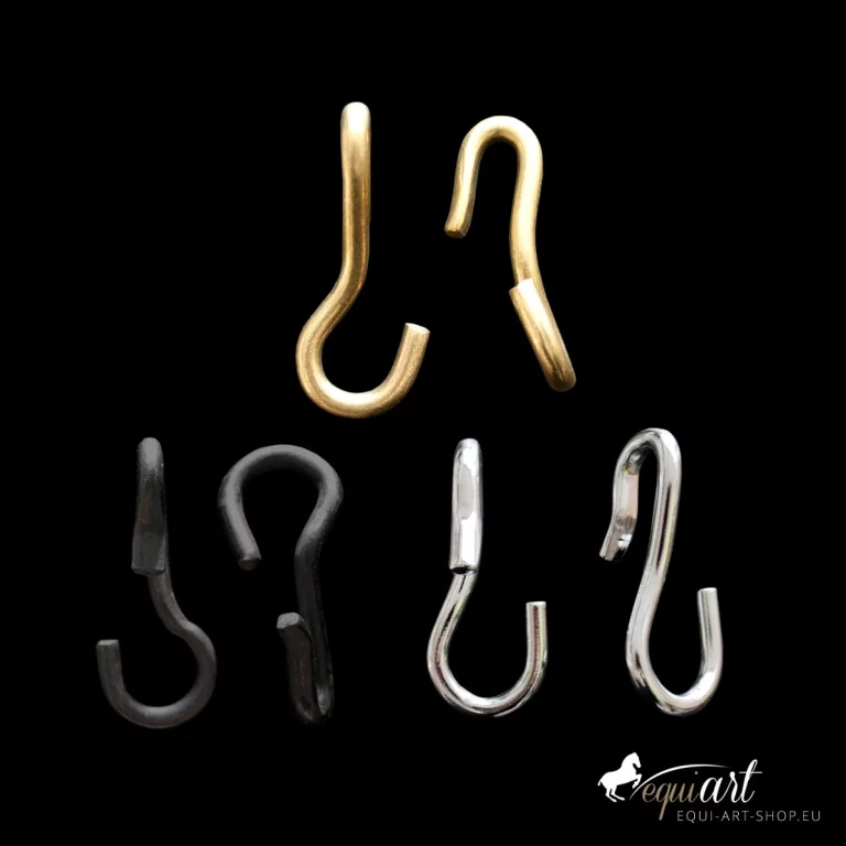 Die Kinnkettenhaken dienen zur Befestigung der Kinnkette am Stangengebiss. Die Haken werden paarweise geliefert.