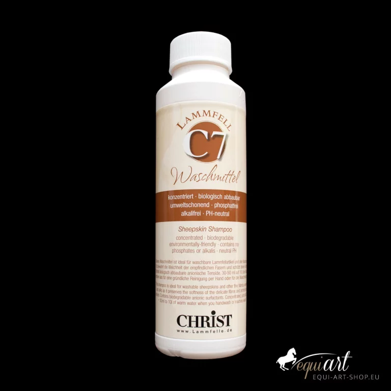 Lammfell Waschmittelkonzentrat C7 von CHRIST (250 ml oder 500 ml) zur intensiven Reinigung von allen waschbaren Lammfellprodukten und Naturfasern. Das Waschmittel schützt die Farben und bewahrt die weichen, flauschigen Fasern. Bitte beachten Sie die Waschanleitung der einzelnen Produkte.