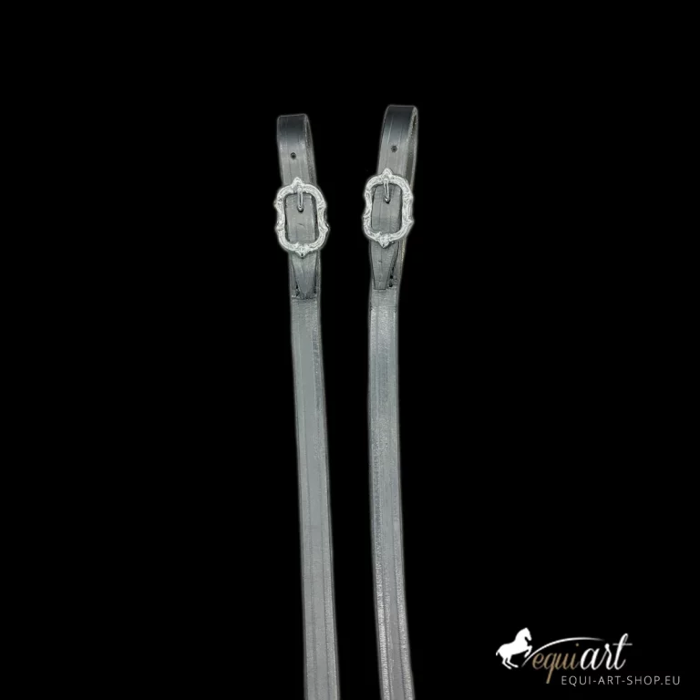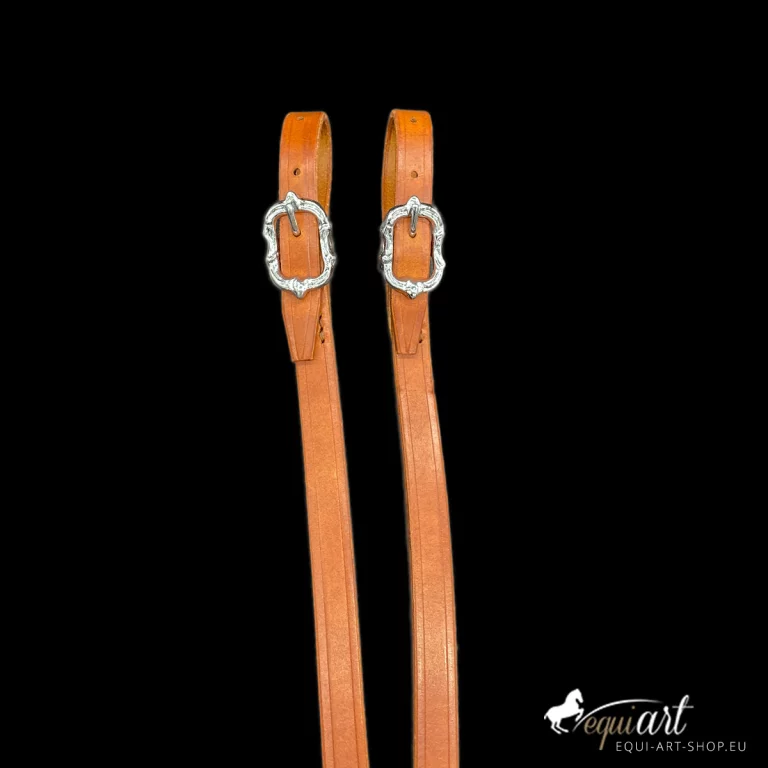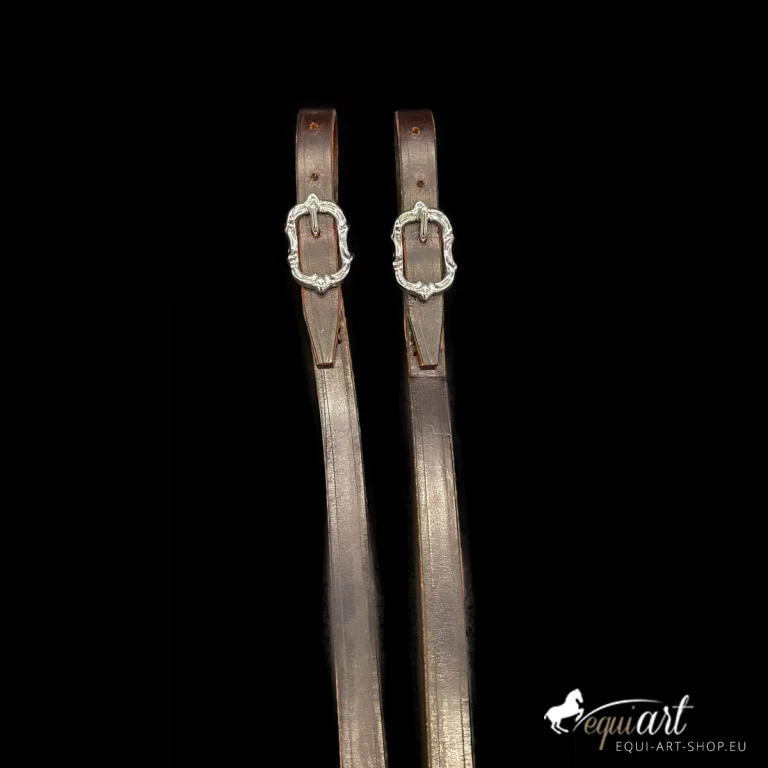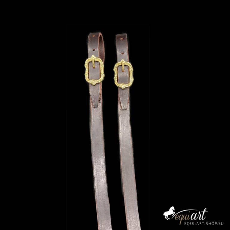 Lederzügel Aveiro Die Lederzügel aus weichem Leder haben eine Gesamtlänge von 2,9 m. Sie sind in schwarz, braun, havanna und cognac erhältlich. Die portugiesischen Cortesia Schnallen können wahlweise in silber oder messing ausgewählt werden.