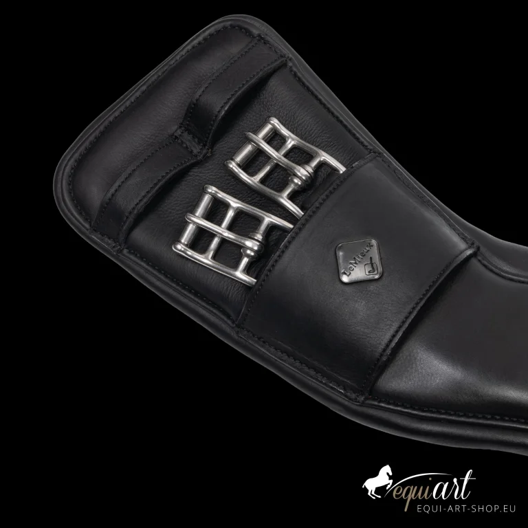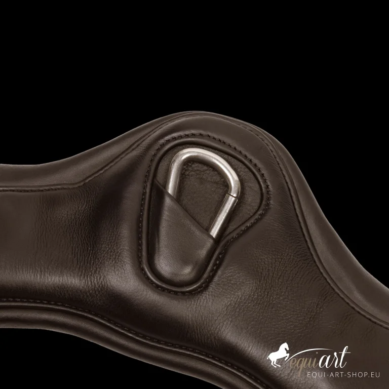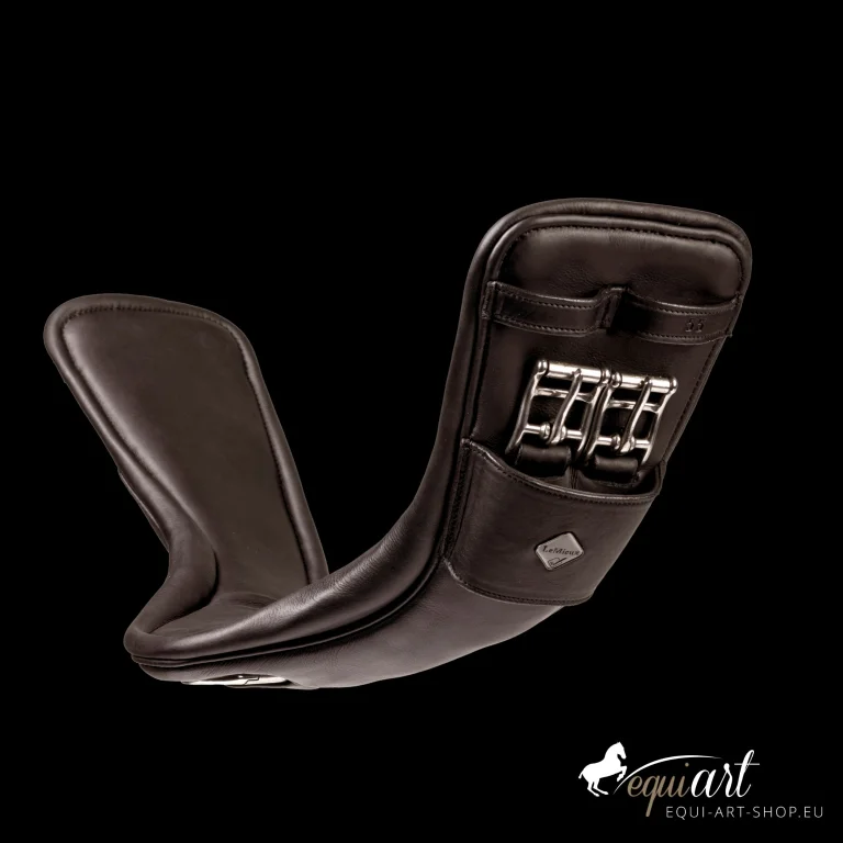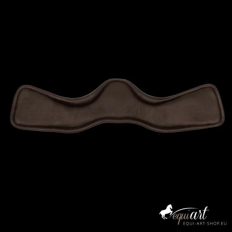 Anatomischer Gel-Sattelgurt aus weichem Leder mit konturierter Form und elastischen Enden – für Druckentlastung, Bewegungsfreiheit und sicheren Sattelhalt.