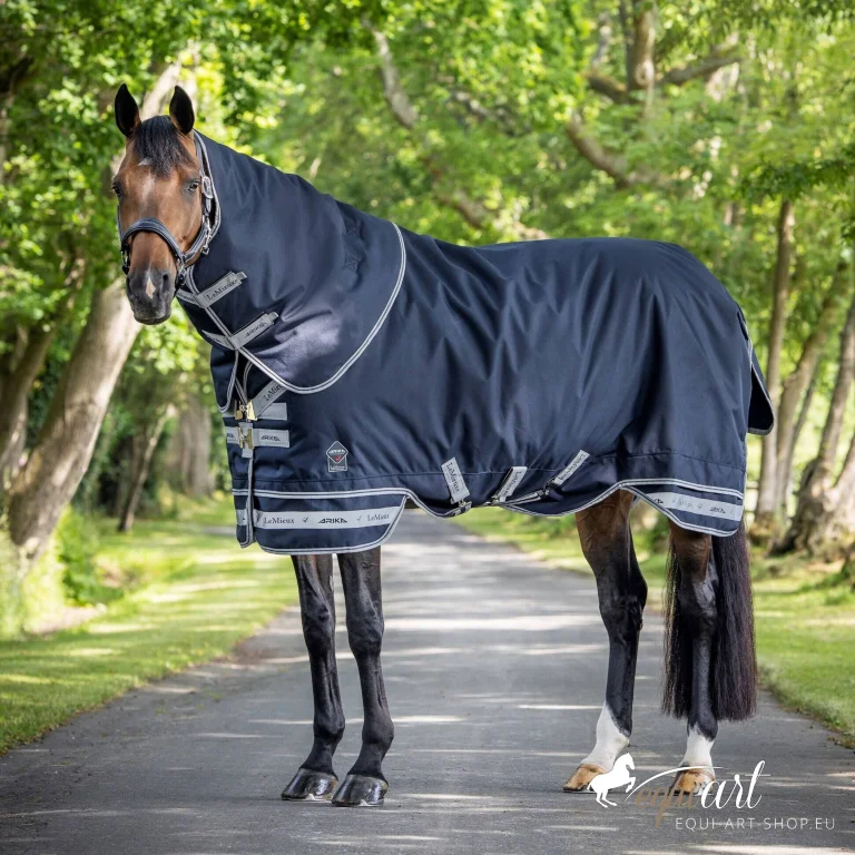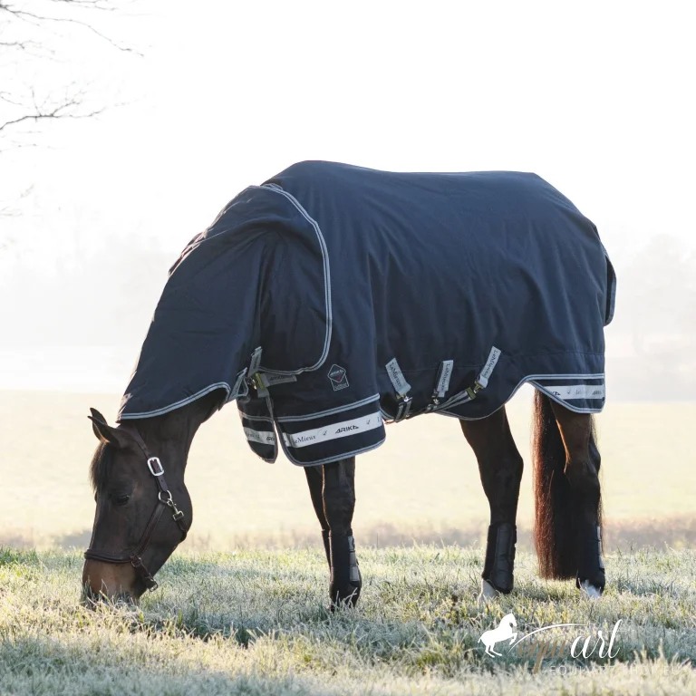 Mit einem robusten 1200D wasserdichten Material, einem individuell gestalteten Frontverschluss zur Druckverteilung und der Möglichkeit, Deckeneinlagen flexibel zu integrieren, bietet sie umfassenden Komfort für Ihr Pferd. Abgerundet wird die Decke durch antibakterielles Futter, reflektierende Panels und einen abnehmbaren Halsteil.