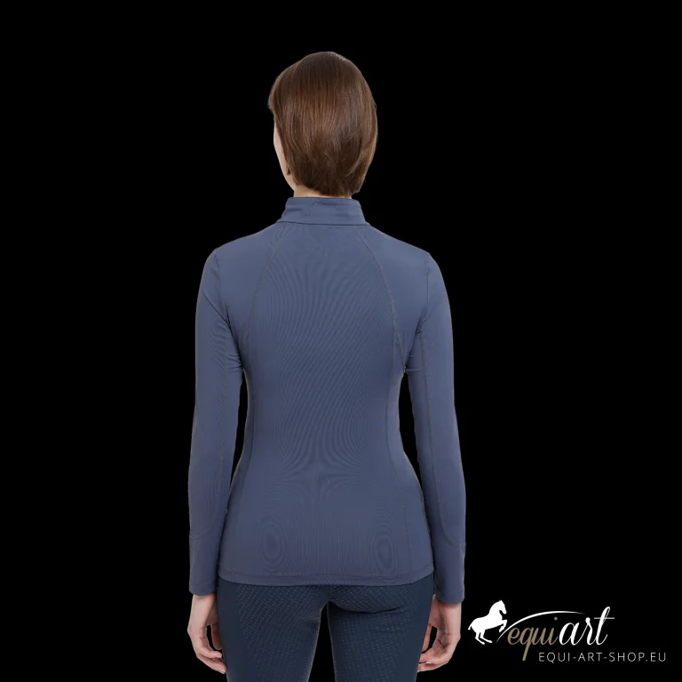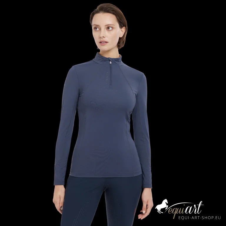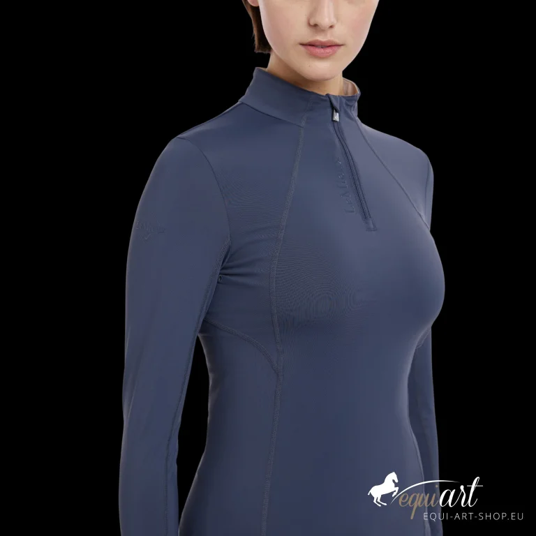 Das UV50+ 1/4-Funktionsshirt mit Zip in der Farbe Dusk Blue bietet optimalen Tragekomfort beim Laufen, Reiten und Gassigehen.