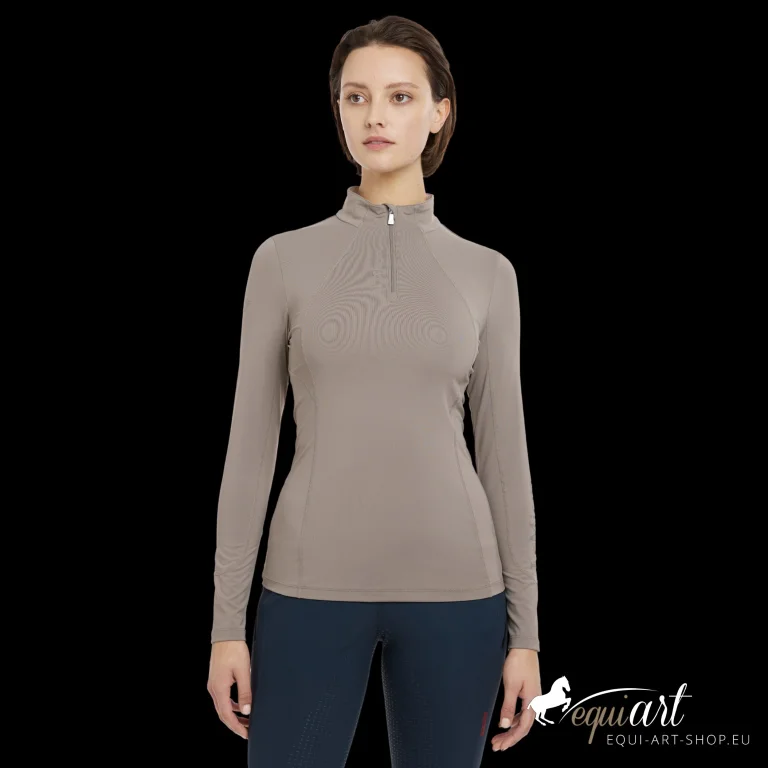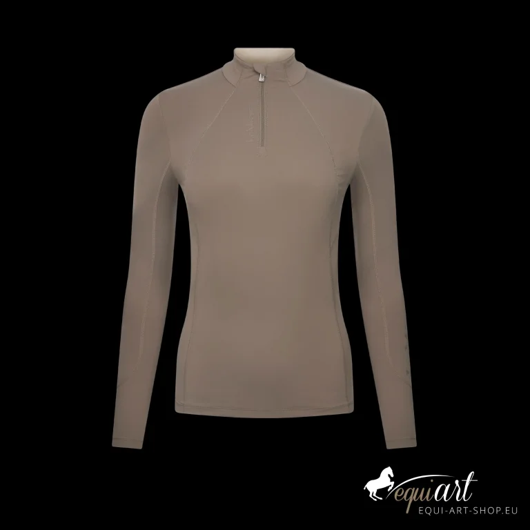 Das UV50+ 1/4-Funktionsshirt mit Zip in der Farbe Pecan bietet optimalen Tragekomfort beim Laufen, Reiten und Gassigehen.