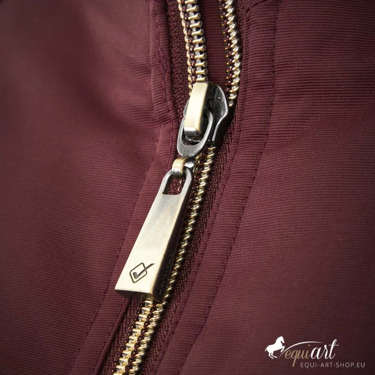 Ideal für den Reitplatz und den Alltag, bietet sie optimalen Schutz mit ihrem wasser- und winddichten Nylon-Obermaterial und versiegelten Nähten. Ihre Atmungsaktivität, dank Unterarm-Reißverschlüssen, und der doppelte Kragen bieten Komfort in jeder Wetterlage.