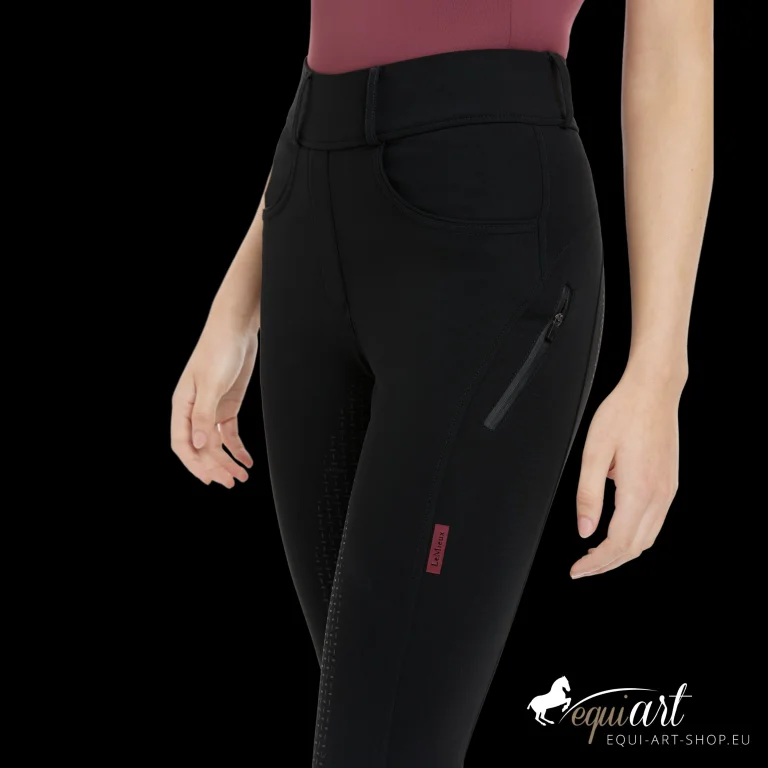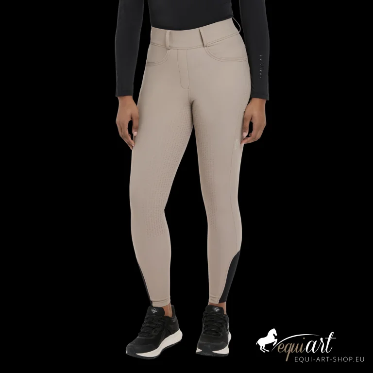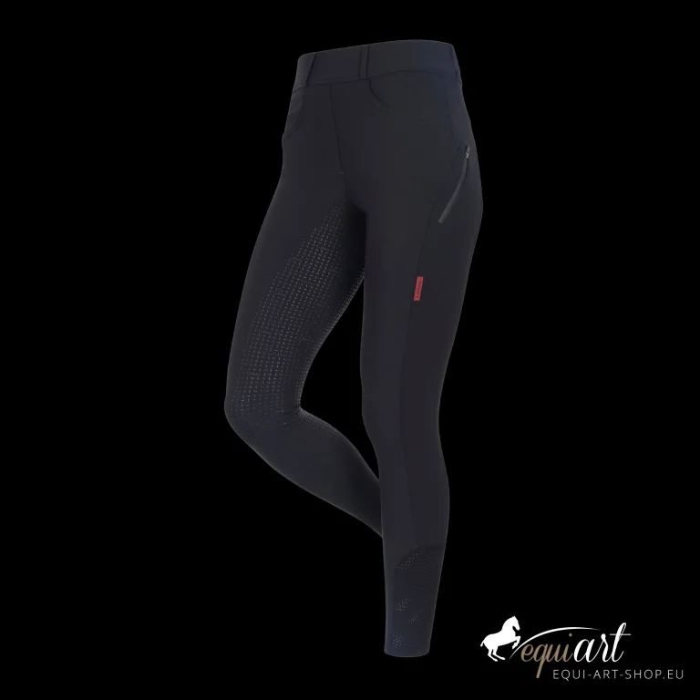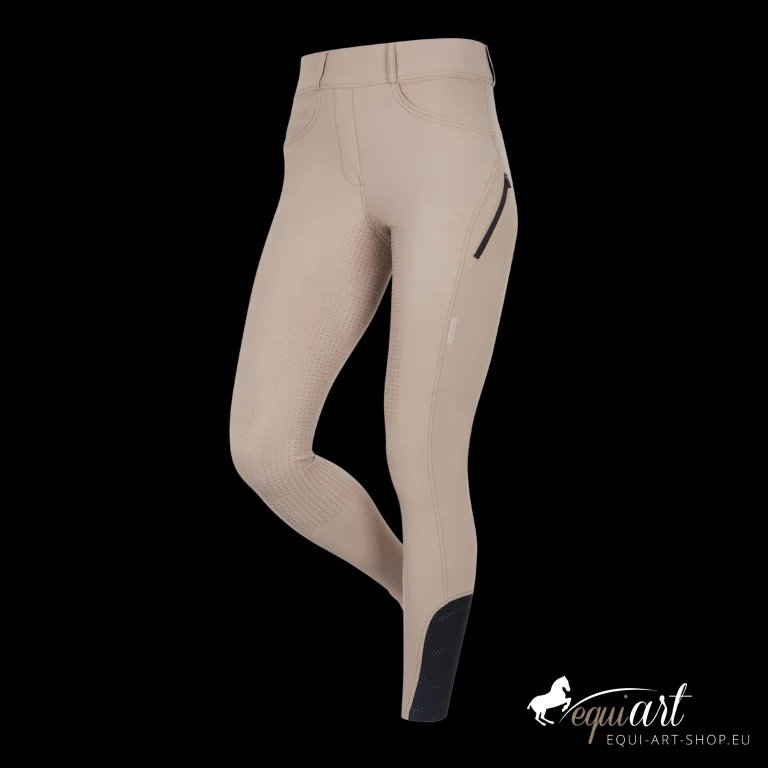 Der elastische Funktionsstoff und der Silikon-Vollbesatz garantieren Komfort und Halt im Sattel. Mit praktischen Taschen, schmeichelnder Passform und atmungsaktiven Beinabschlüssen sind sie die perfekte Wahl für anspruchsvolle Reiterinnen.