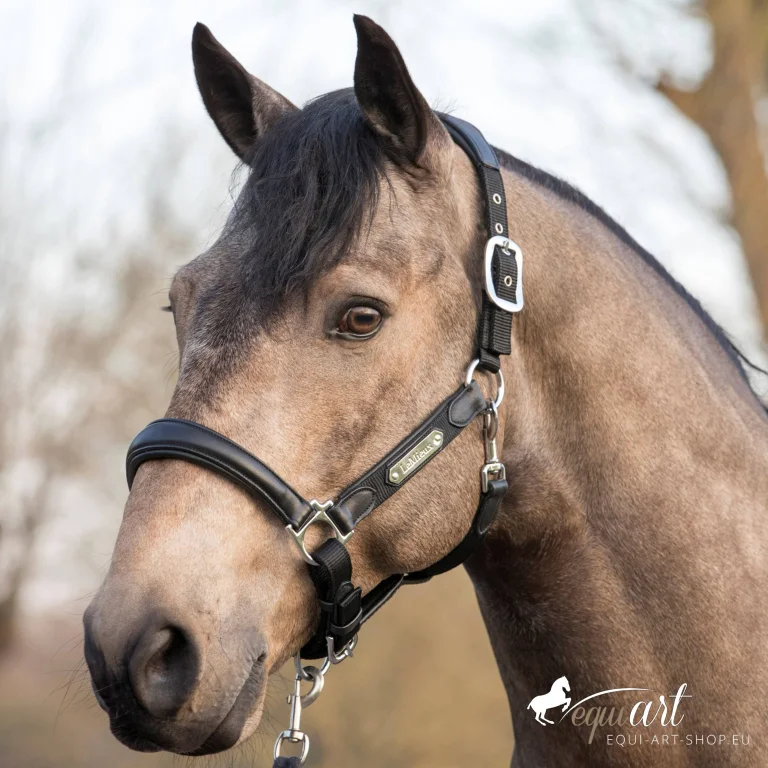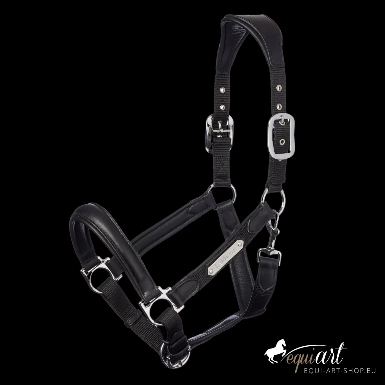 Das breite, anatomisch geformte Kopfstück sorgt für eine gleichmäßige Druckverteilung und trägt zur Entlastung des empfindlichen Kopfbereichs des Pferdes bei. Der weich mit Leder unterlegte Nasenriemen sowie die Backenstücke garantieren maximalen Komfort.