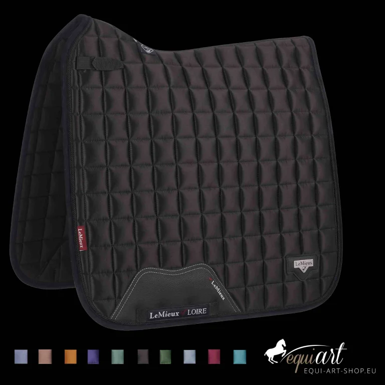 Die LeMieux Dressurschabracke Loire aus der stilvollen Loire-Kollektion kombiniert elegantes Satingewebe mit einem weichen und atmungsaktiven Bambusfutter.