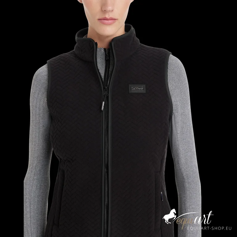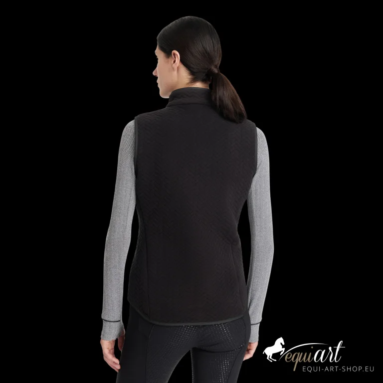 Die LeMieux Fleeceweste Herringbone ist eine vielseitige Ergänzung für sportliche und aktive Outfits und eignet sich ideal als Midlayer an kühleren Tagen. Das markante, hitzeverschweißte Fischgrätmuster verleiht der Weste einen modernen Look und hebt sich optisch von klassischen Fleecewesten ab. Die Einfassung mit mattem Finish und der abgerundete Saum – besonders komfortabel beim Reiten – unterstreichen den technischen und sportlichen Charakter.
