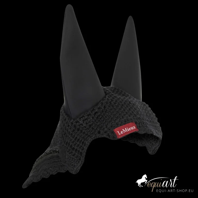Die LeMieux Acoustic Diamante Fliegenhaube in Schwarz vereint Funktionalität und elegantes Design mit einem Fokus auf Geräuschreduzierung und Tragekomfort. Eine integrierte Schicht aus schalldämpfendem Mikroschaum reduziert störende Umgebungsgeräusche, was die Konzentration und Entspannung des Pferdes fördert.