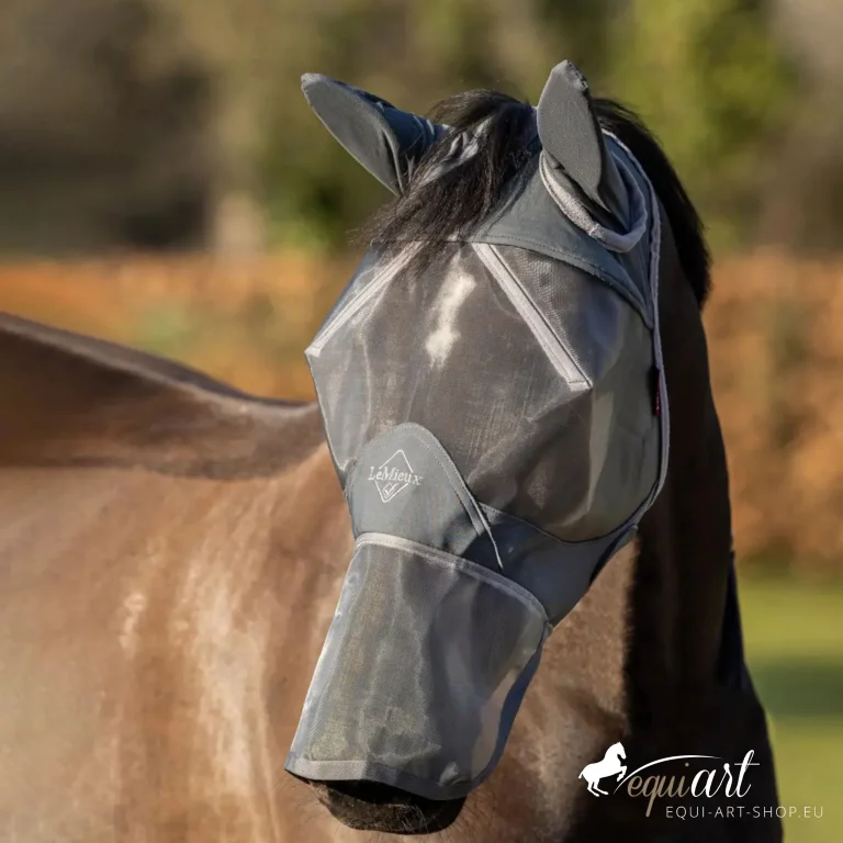 Atmungsaktive Mesh-Ohren verhindern Reizungen durch Fliegen und Mücken. Der verlängerte Nüsternbereich bietet UV-Schutz für empfindliche Nüstern.