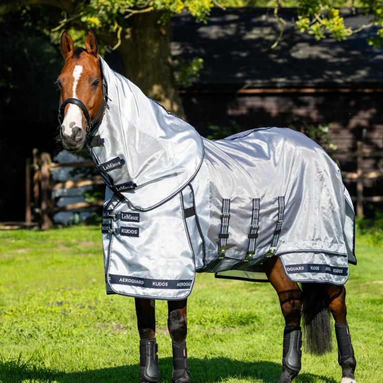 Schützen Sie Ihr Pferd mit Stil: Die Kudos AeroGuard Fliegendecke bietet höchsten Komfort dank maßgeschneidertem Power-Mesh, optimale Passform und Bewegungsfreiheit. Sie ist antibakteriell, antistatisch und schnell trocknend, um Ihr Pferd trocken und geschützt zu halten.
