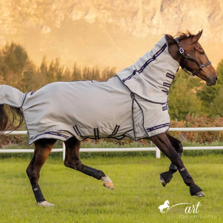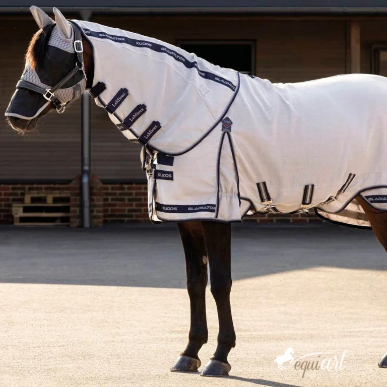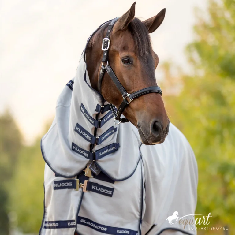 Die Kudos Gladiator Fliegendecke ist der optimale Begleiter für ihr Pferd, der durch seinen luxuriösen Tragekomfort und seine hochfunktionellen Eigenschaften besticht – ein Must-Have für jeden Pferdebesitzer, der Wert auf das Wohlbefinden seines Tieres legt.