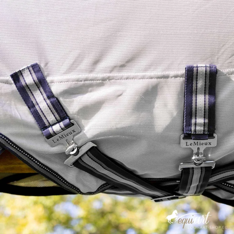 Speziell konzipiert mit einer extra großen Bauchklappe mit drei Verschlüssen, bietet die Decke umfassenden Schutz für den empfindlichen Bauchbereich und garantiert einen sicheren Sitz ohne Verrutschen. Der tiefe und lange Schweifschnitt schützt ebenfalls Schweif und Hinterbeine Ihres Pferdes.