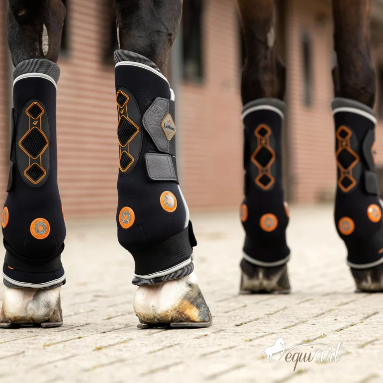 Die LeMieux Magnetfeld-Gamaschen bieten eine innovative Unterstützung im Rahmen der Magnetfeldtherapie für Pferde. Im Inneren der Gamaschen befindet sich eine gewebte Schicht aus Stahlfasern, die direkt unter 18 leistungsstarken Magneten mit je 2600 Gauß liegt. Diese Konstruktion erzeugt ein gleichmäßiges Magnetfeld rund um das gesamte Pferdebein.