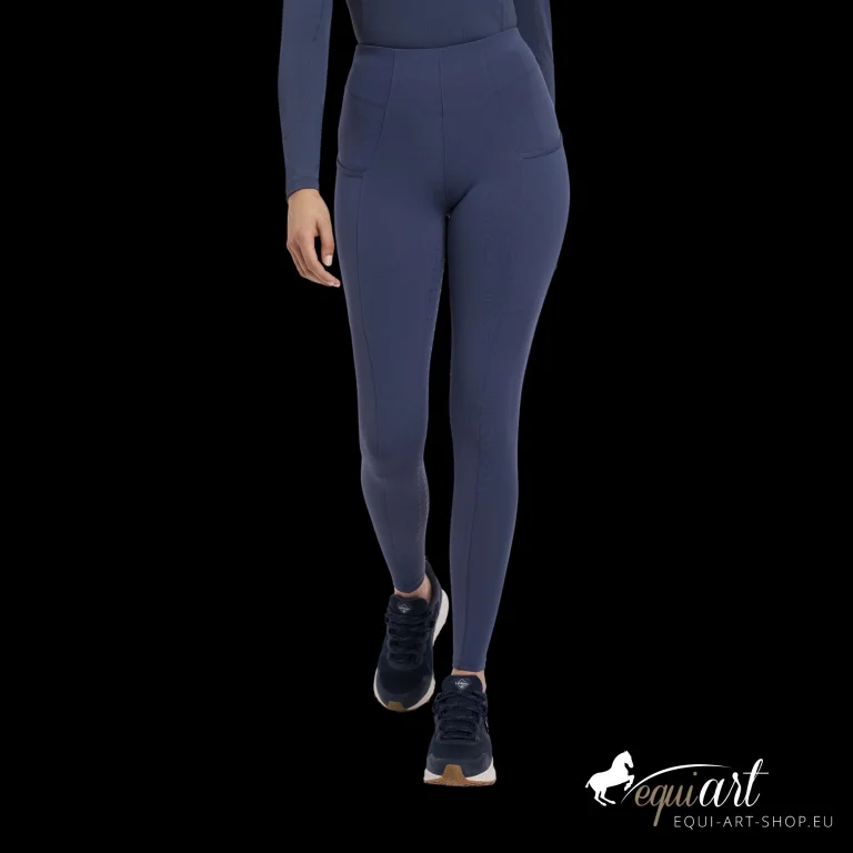 Diese hochwertigen Reitleggins in der Farbe Dusk Blue bestehen aus einem elastischen, nahtlosen Material, das Ihnen uneingeschränkte Bewegungsfreiheit bietet. Der stützende Gummibund sorgt dafür, dass die Leggings perfekt sitzen, egal ob Sie ausreiten, mit Ihrem Hund spazieren gehen oder im Stall arbeiten.