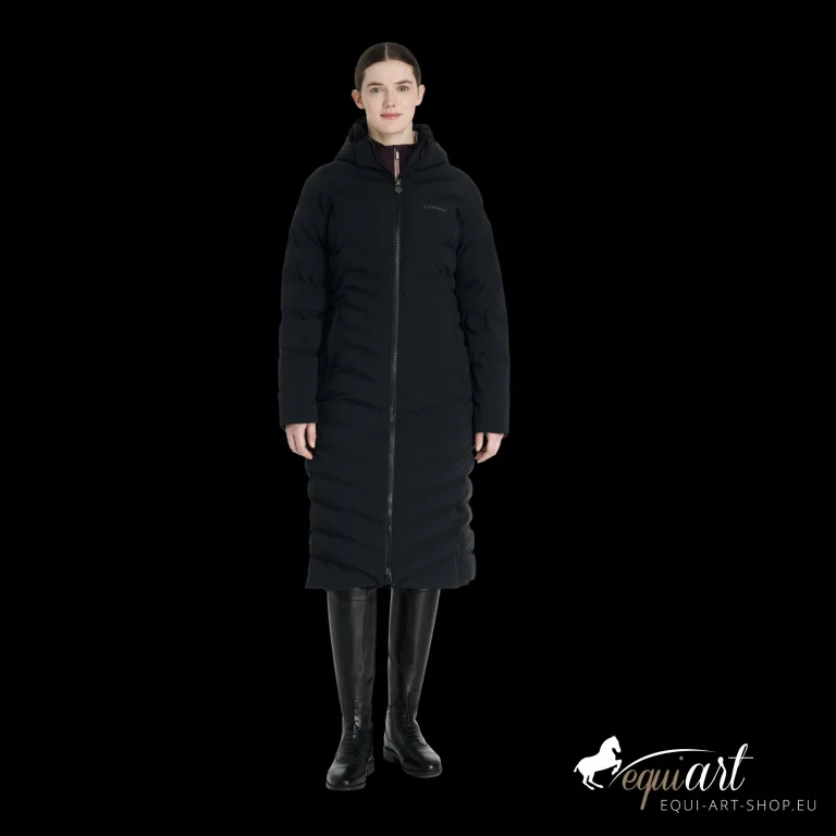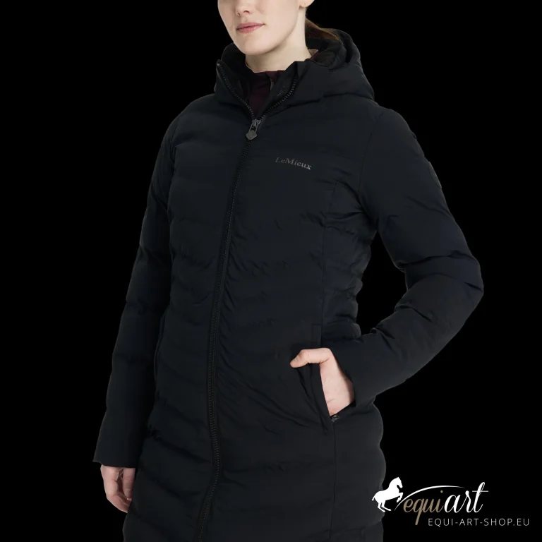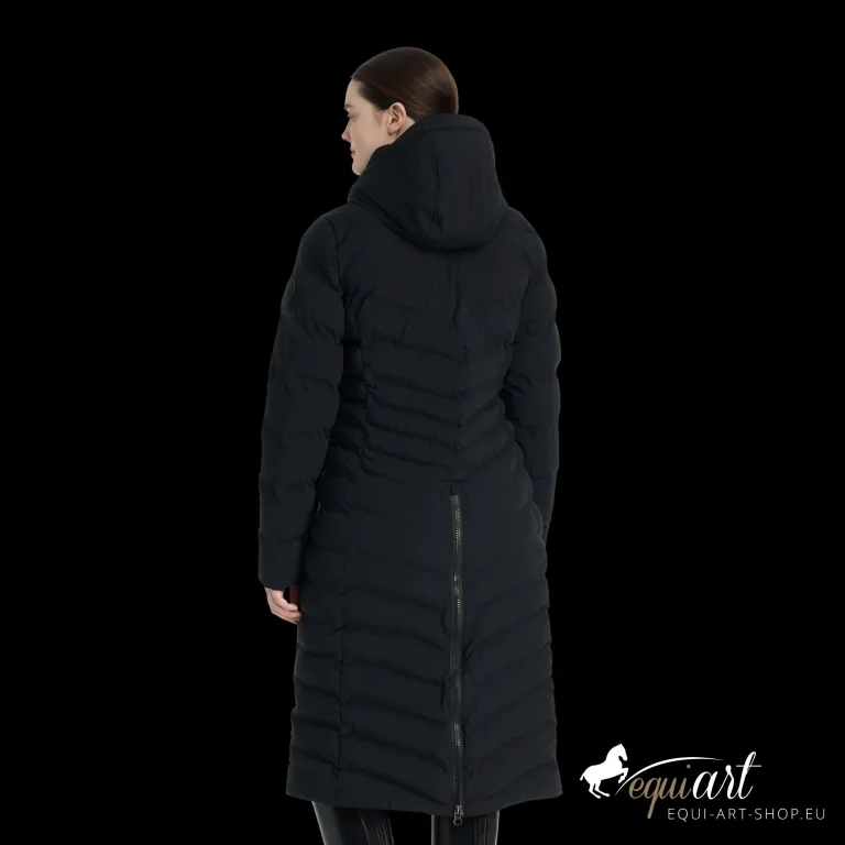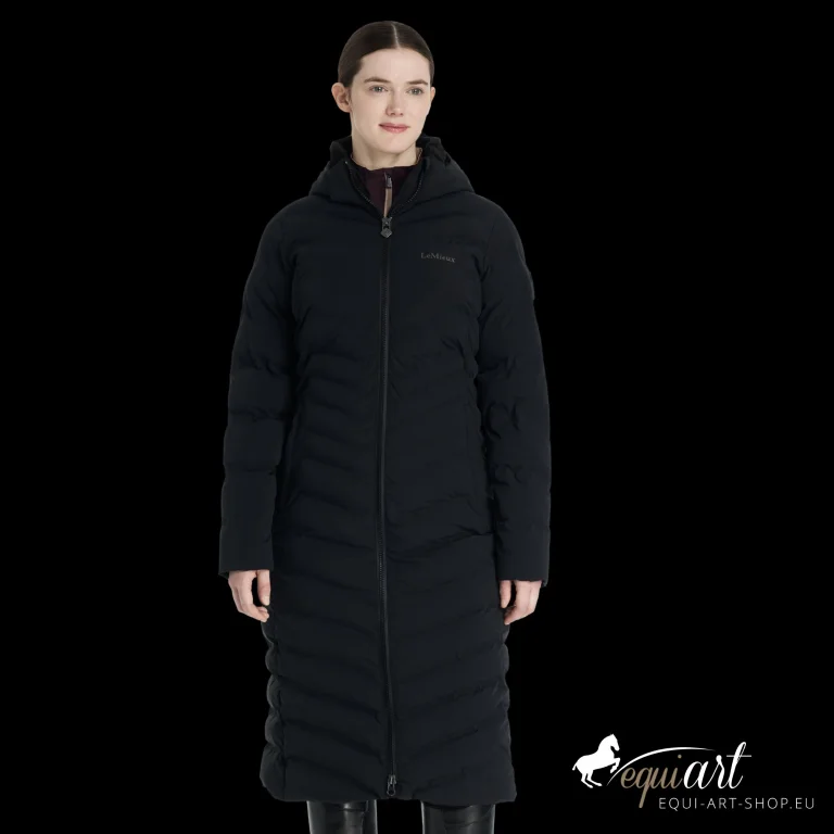 Wasserdichter und atmungsaktiver Steppmantel mit recycelter Füllung, hitzeverschweißter Steppung sowie Reitdetails wie Rückenzwickel und Beinschlaufen – funktional, strapazierfähig und nachhaltig.