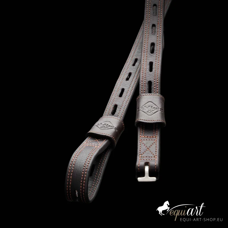 Monobügelriemen aus weichem Leder mit T-Bar-System für engen Kontakt, hoher Stabilität und maximalen Komfort im Sattel.