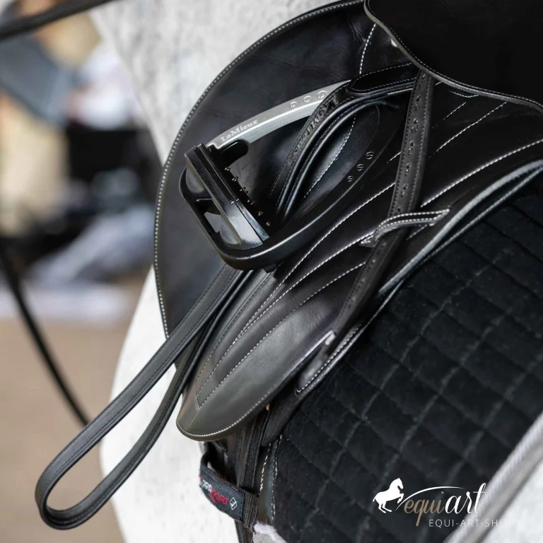 Das durchdachte Design umfasst ein leicht angehobenes Leder an der Unterseite, das speziell entwickelt wurde, um Ihnen eine verbesserte Stabilität zu bieten. So können Sie mit einem engen Kontaktgefühl unter Bein und Oberschenkel optimal reiten. Der integrierte Nylonkern verhindert Dehnungen und sorgt dafür, dass die Steigbügelriemen ihre Form und Funktion über lange Zeit behalten.