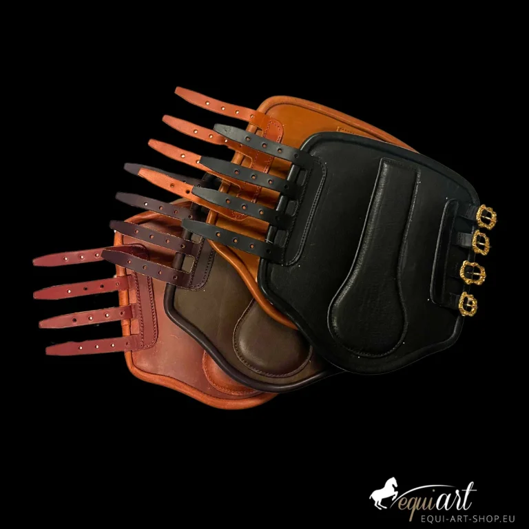 Portugiesische Gamaschen mit Cortesia Schnallen, für die Vorder-, und Hinterbeine. Handgefertigt in Portugal. Erhältlich in den Farben schwarz, braun, havanna und cognac.