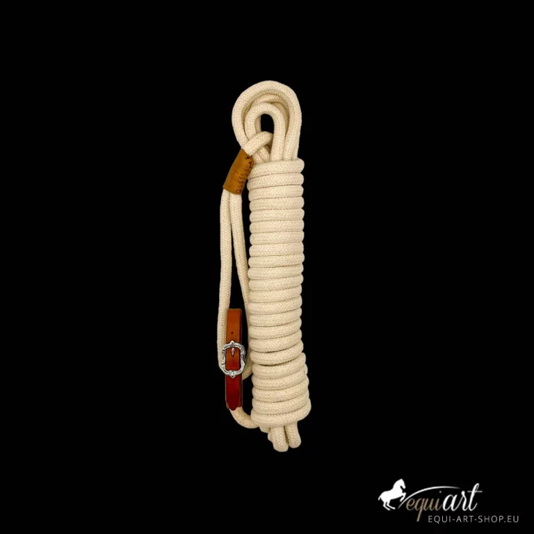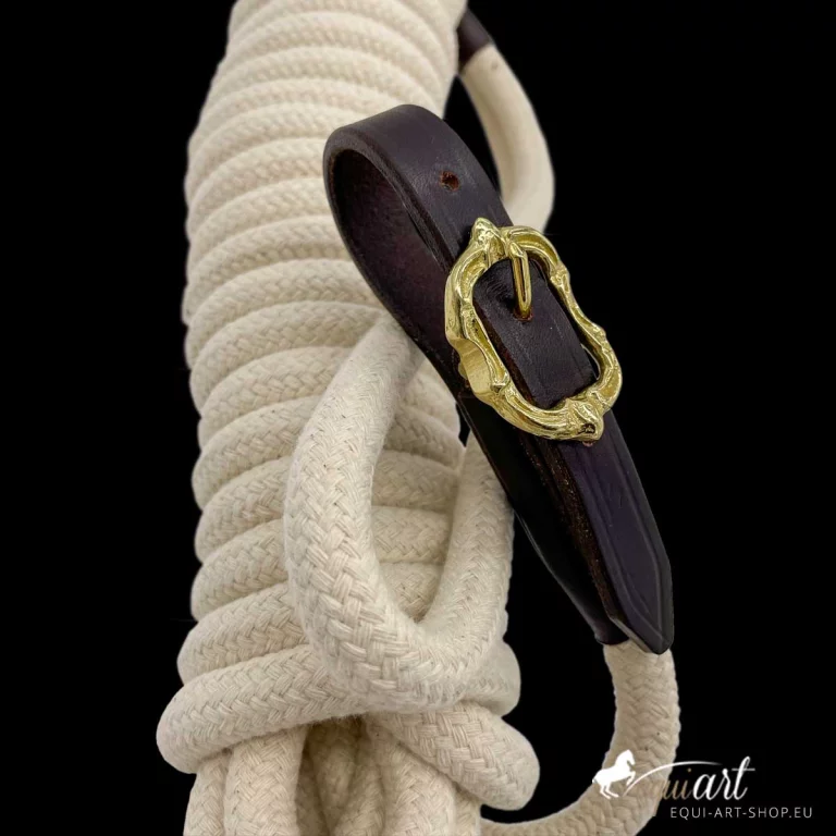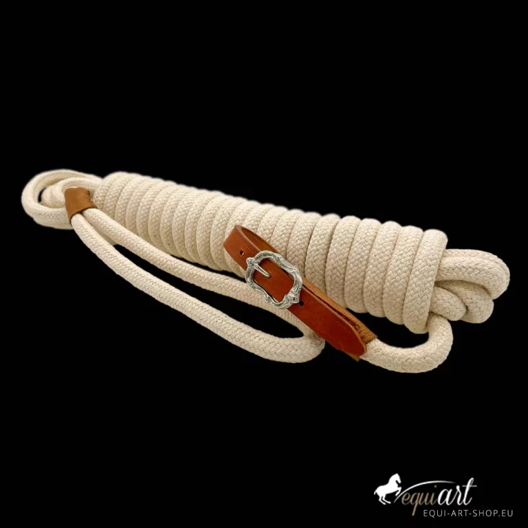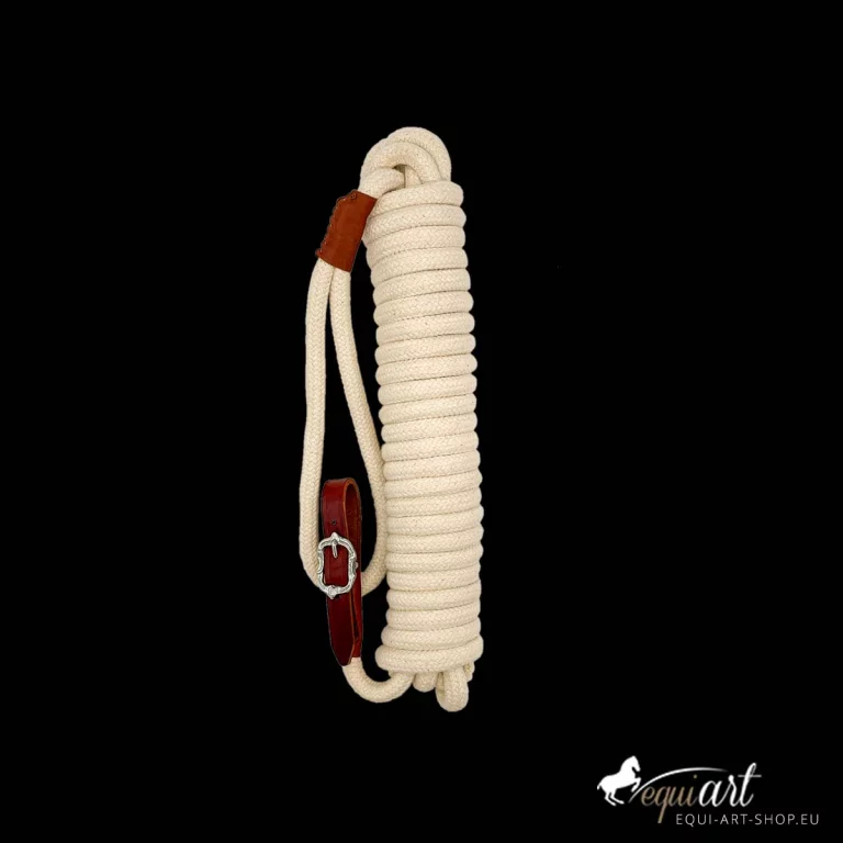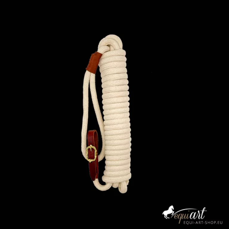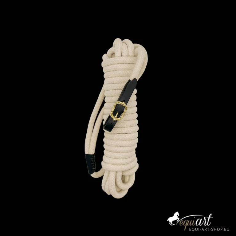 Longe mit Lederschlaufe und barocker Schnalle zur Befestigung in 7 m Länge aus reiner Baumwolle.