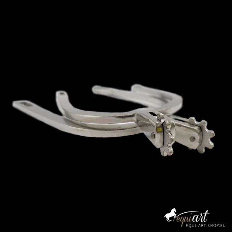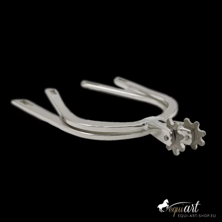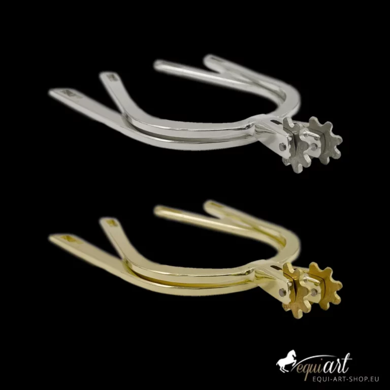 Spanischer Sporen Sevilla Robuster Sporen, der mit Sporenriemen am Schuh oder Stiefel befestigt wird. Den Sporen führen wir in messing oder silber.
