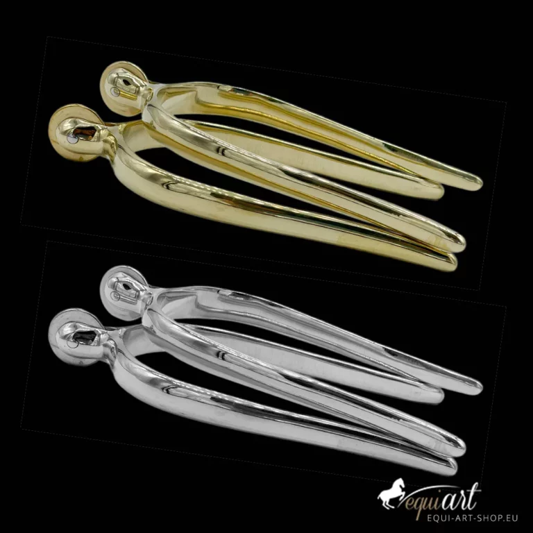 Stecksporen sind handlich und im Alltag sehr praktisch, da sie nahezu auf jede Art Schuh oder Stiefel passen. Der Dorn von Stecksporen Johann ist gerade mit Rad. Erhältlich in den Farben silber oder messing.