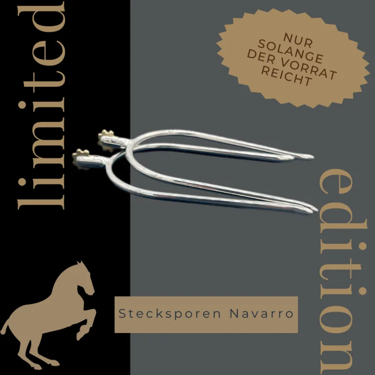 Durch leichtes Zusammen-, oder Auseinanderbiegen der langen Schenkel lassen sie sich auf jede Breite anpassen. Die portugiesischen Stecksporen werden einfach auf direkt über den Schuhabsatz gesteckt.