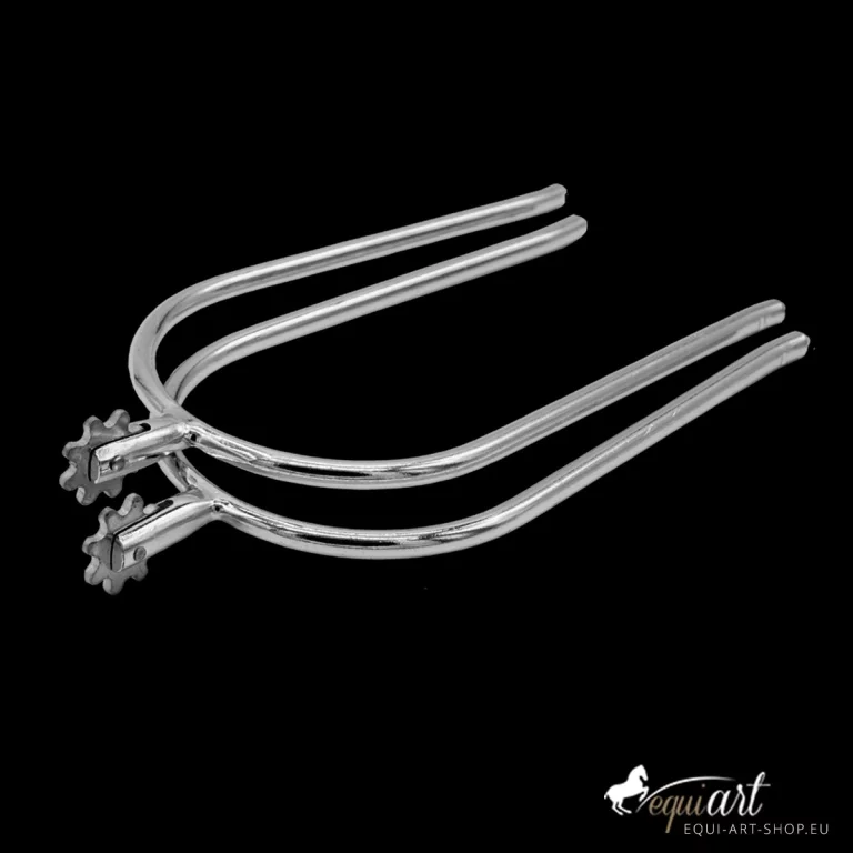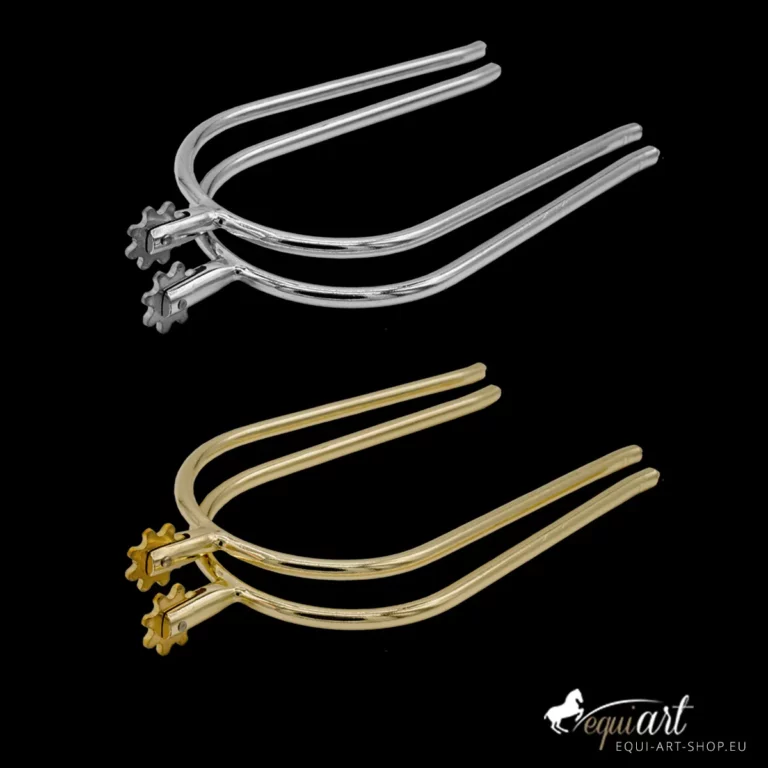 Portugiesische Stecksporen aus Edelstahl mit gezacktem Rad in silber oder messing.
